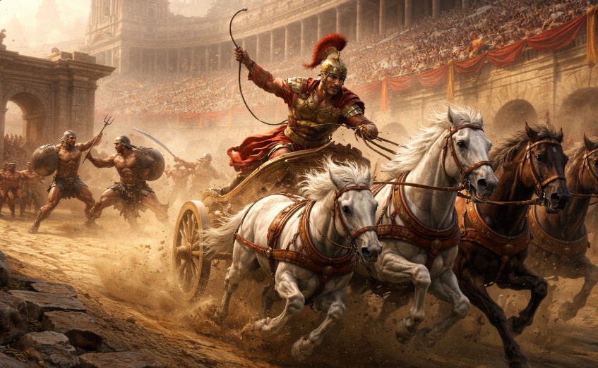 რომში ჩასვლის შემდეგ მან კარიერა დაიწყო როგორც პროფესიონალმა ეტლოსანმა. იმ დროის მთავარი ასპარეზი იყო ცირკუს მაქსიმუსი — გიგანტური სტადიონი, რომელიც ათასობით მაყურებელს იტევდა. აქ გამართული შეჯიბრებები იმპერიის ერთ-ერთი ყველაზე საყვარელი გასართობი იყო და ზოგჯერ პოლიტიკურ მნიშვნელობასაც კი ატარებდა.